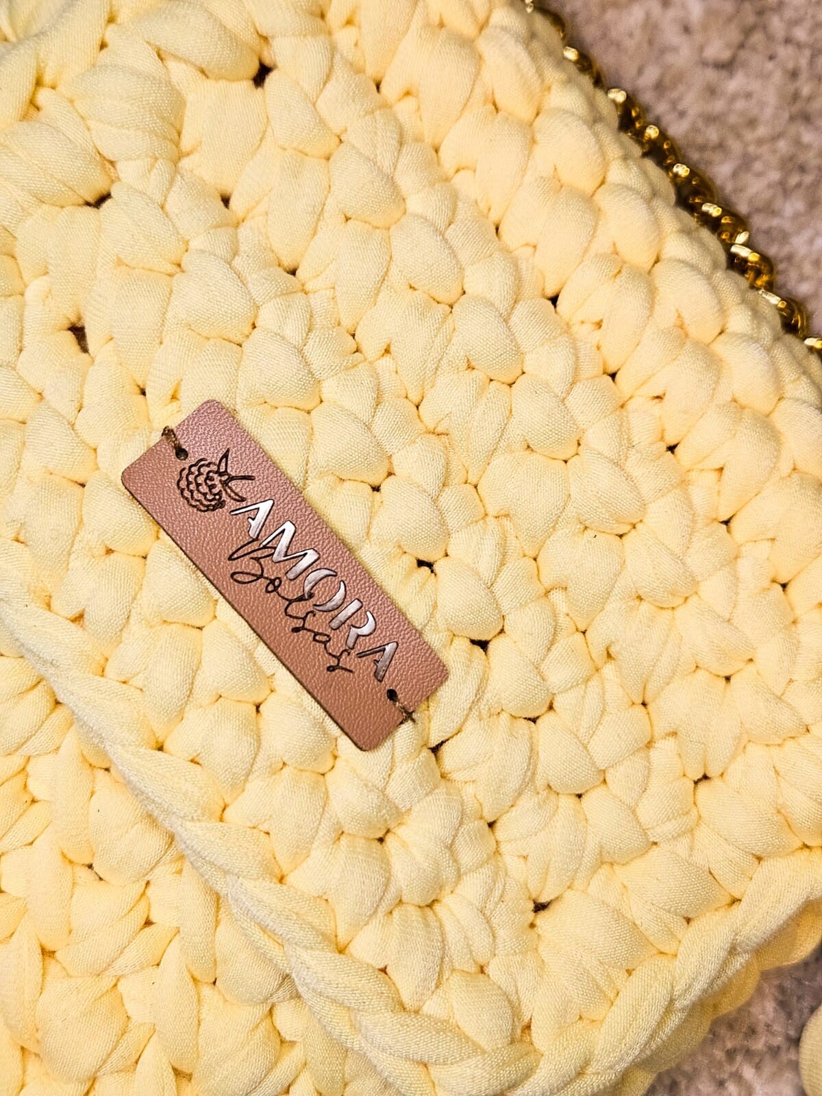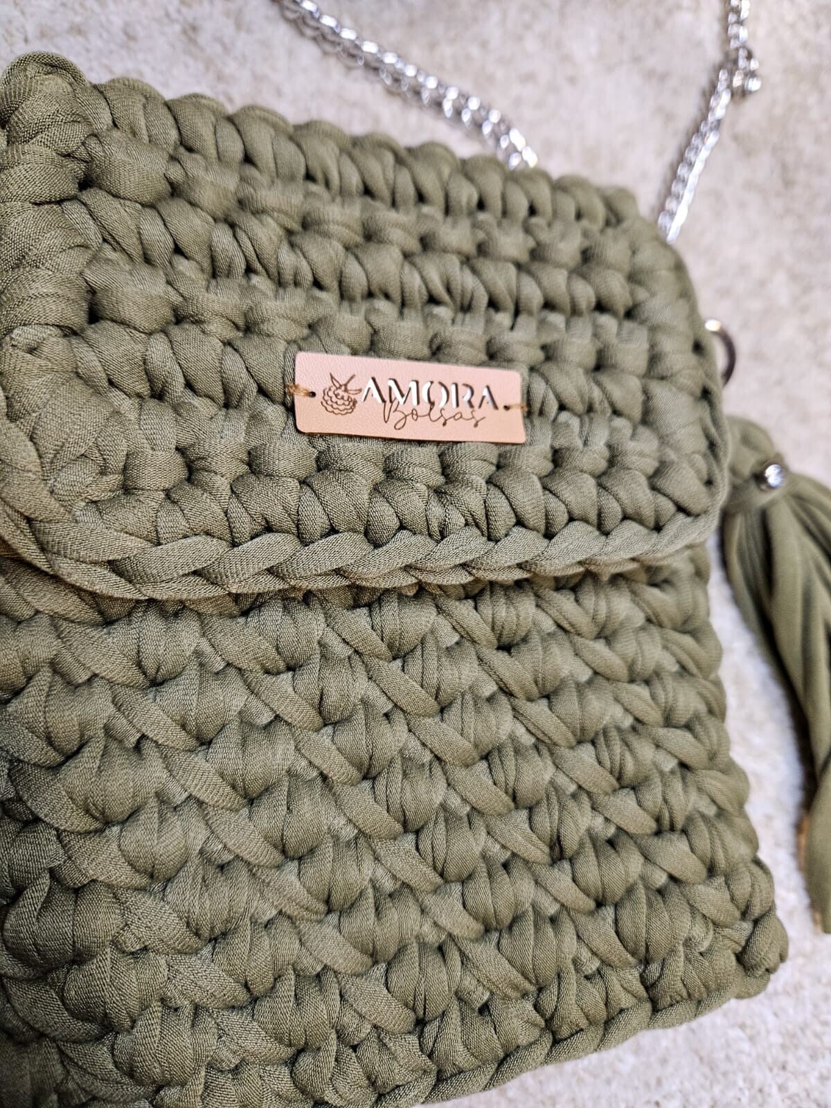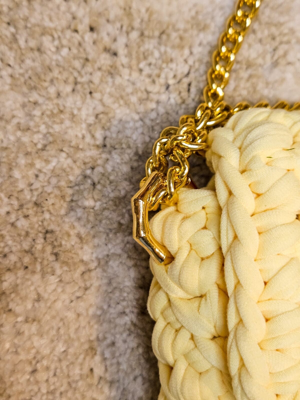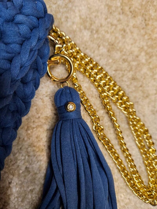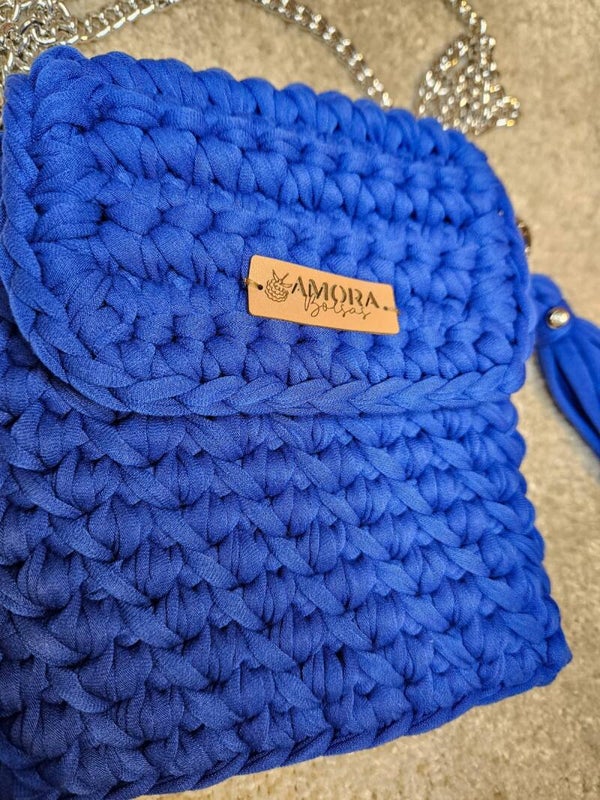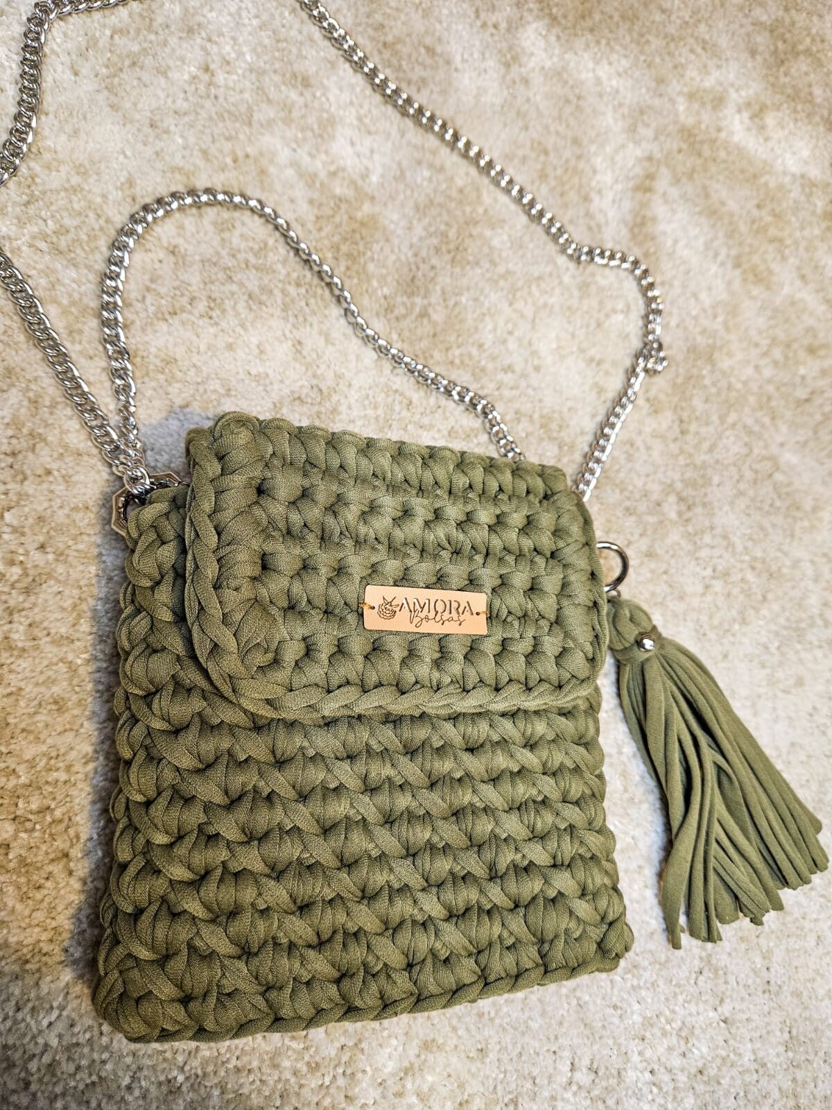 Handmade crochet bag. Made from premium mesh yarn with anti-pilling treatment. This bag has a metal strap metal with a hexagonal carabiner in two versions: golden and nickel-plated. It has a beautiful ornament with a Light Point to add charm. All materials used are of the highest quality and imported from Brazil.